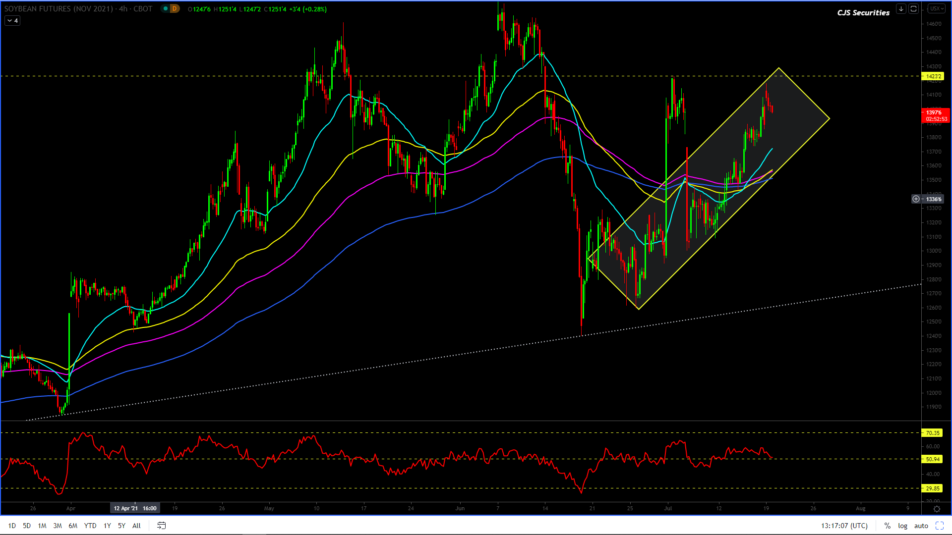 240 Min CBOT November 21 Soybean Candle Chart