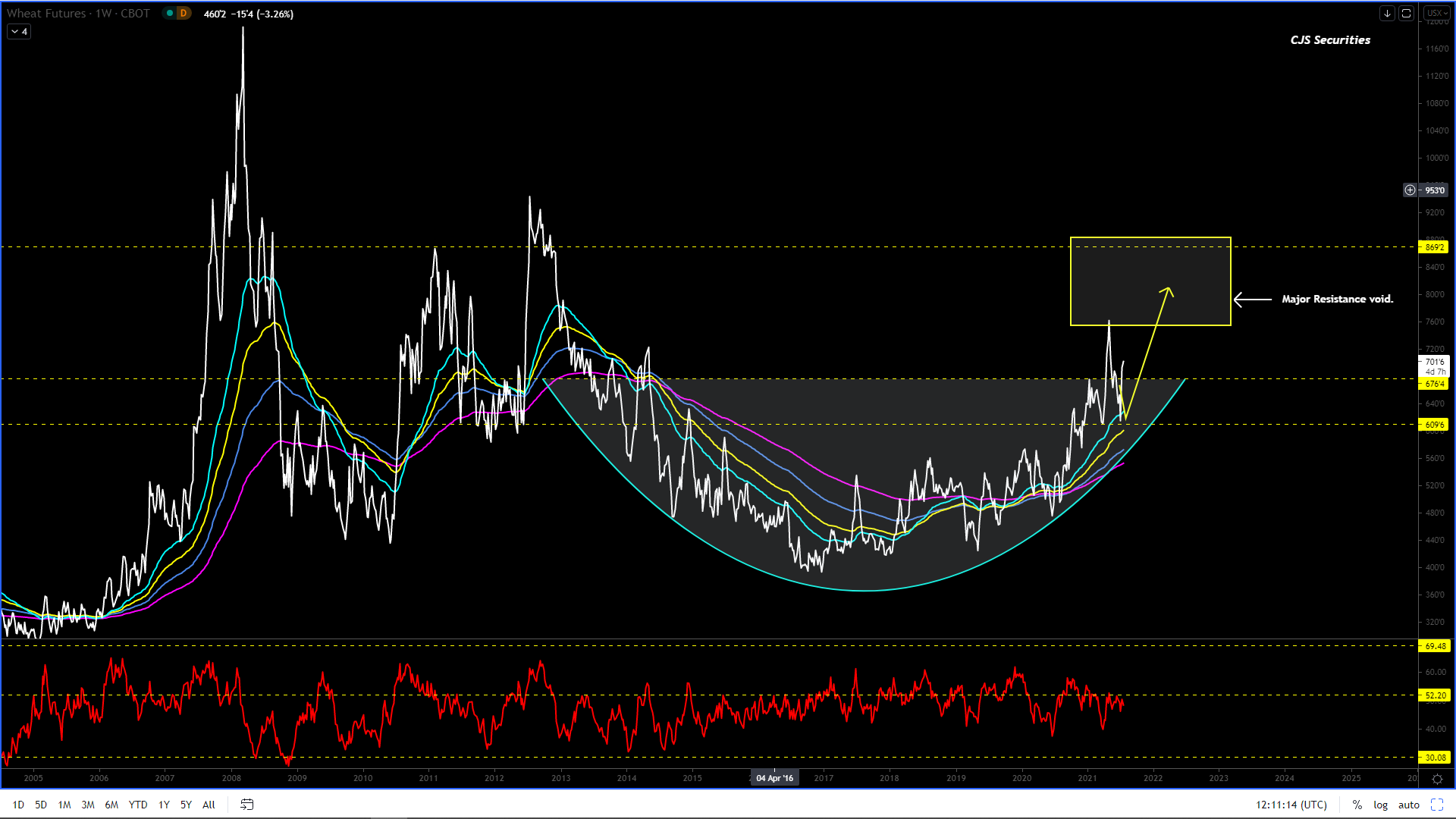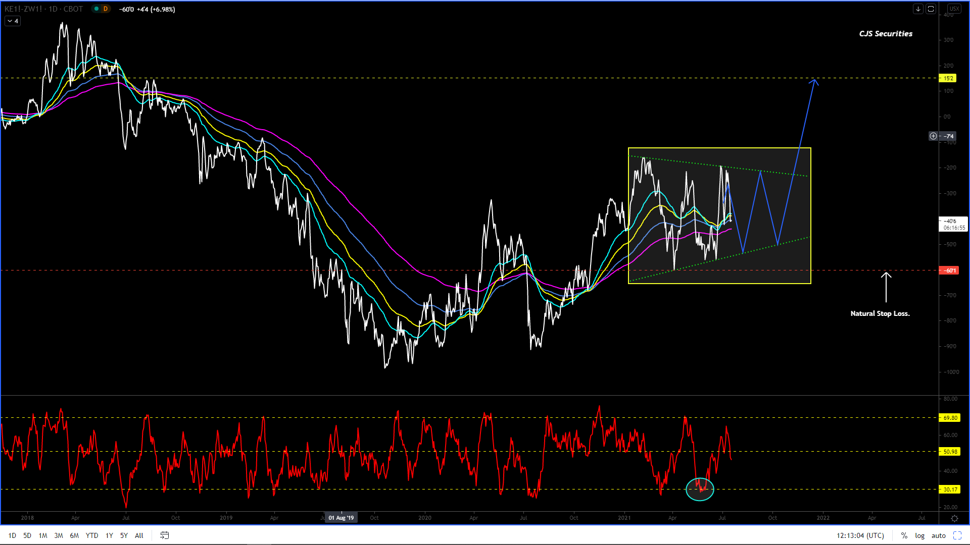 This chart is now looking to take its high, and based on my Dollar / Rand view combined with my longer-term Corn view makes perfect sense.