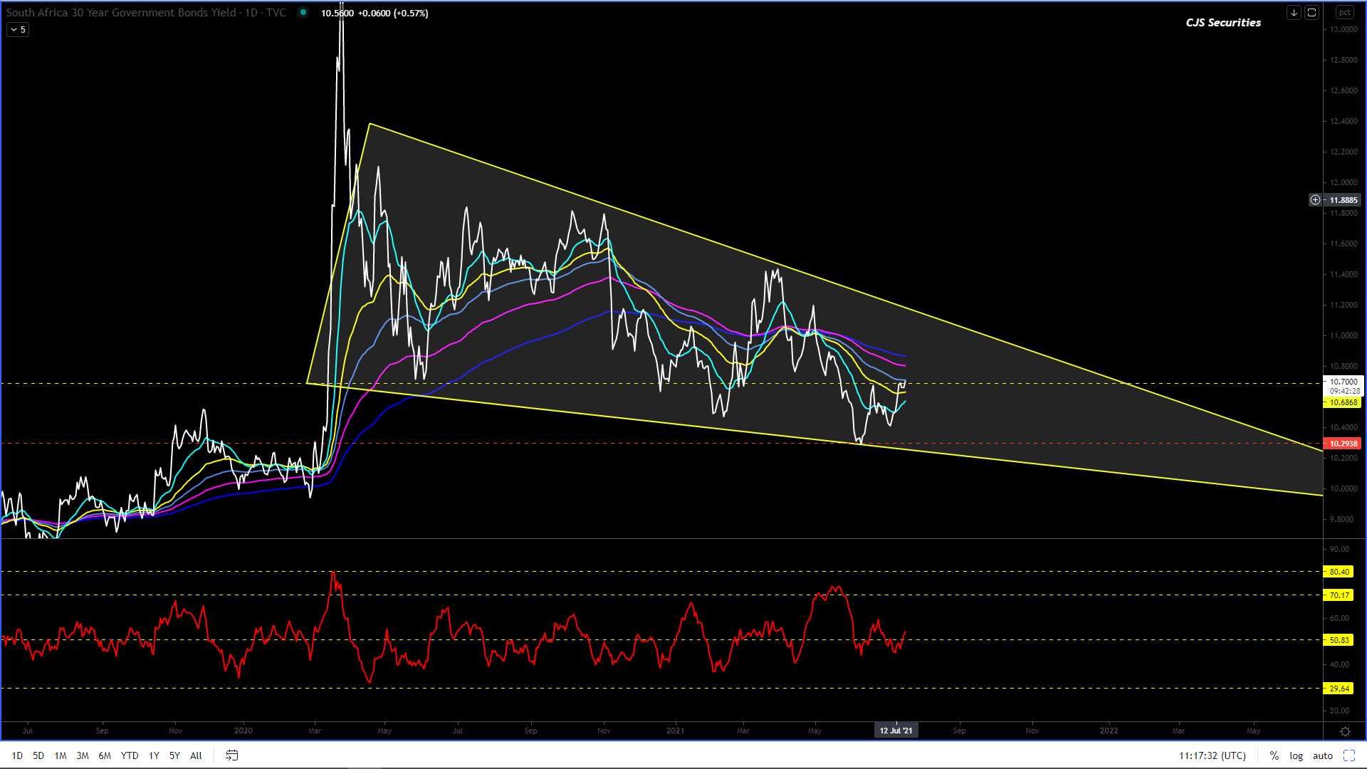 What a one day move we have seen and if we close here today then there is every chance that this chart comes back down to test the 10.30% level in the coming weeks.
