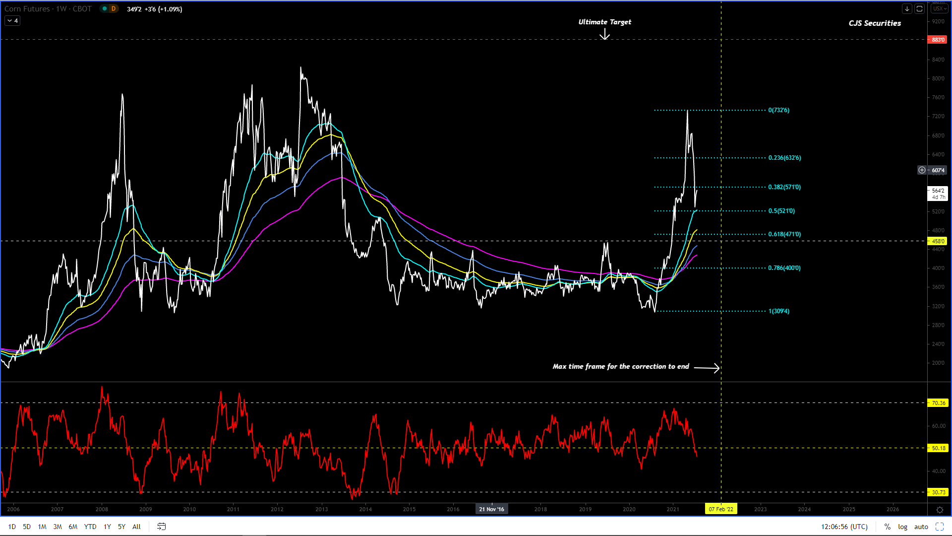 Once the correction is over, my ultimate target for corn is a new ATH possibly breaching $9.00 intra week.