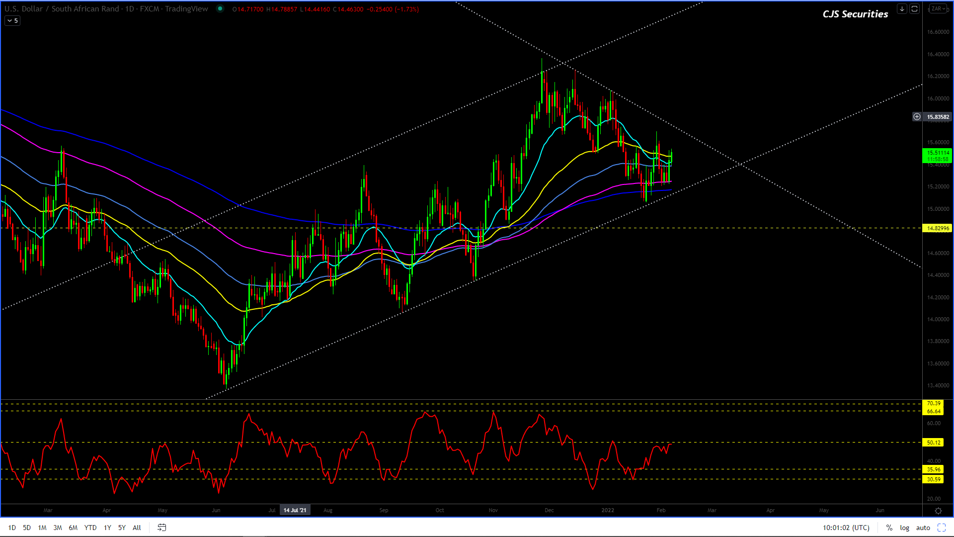 Based on the charts current formation, we would only look to get long sub R15.05 scale down to the R14.80 level. – hope you bought some USD last week.