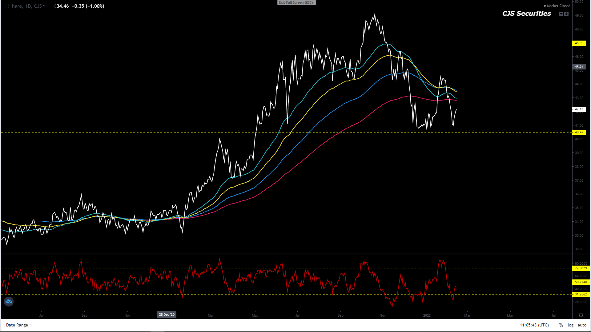 We have not been stopped on the below view but will put in a stop under 40% as this chart is now highly overbought!