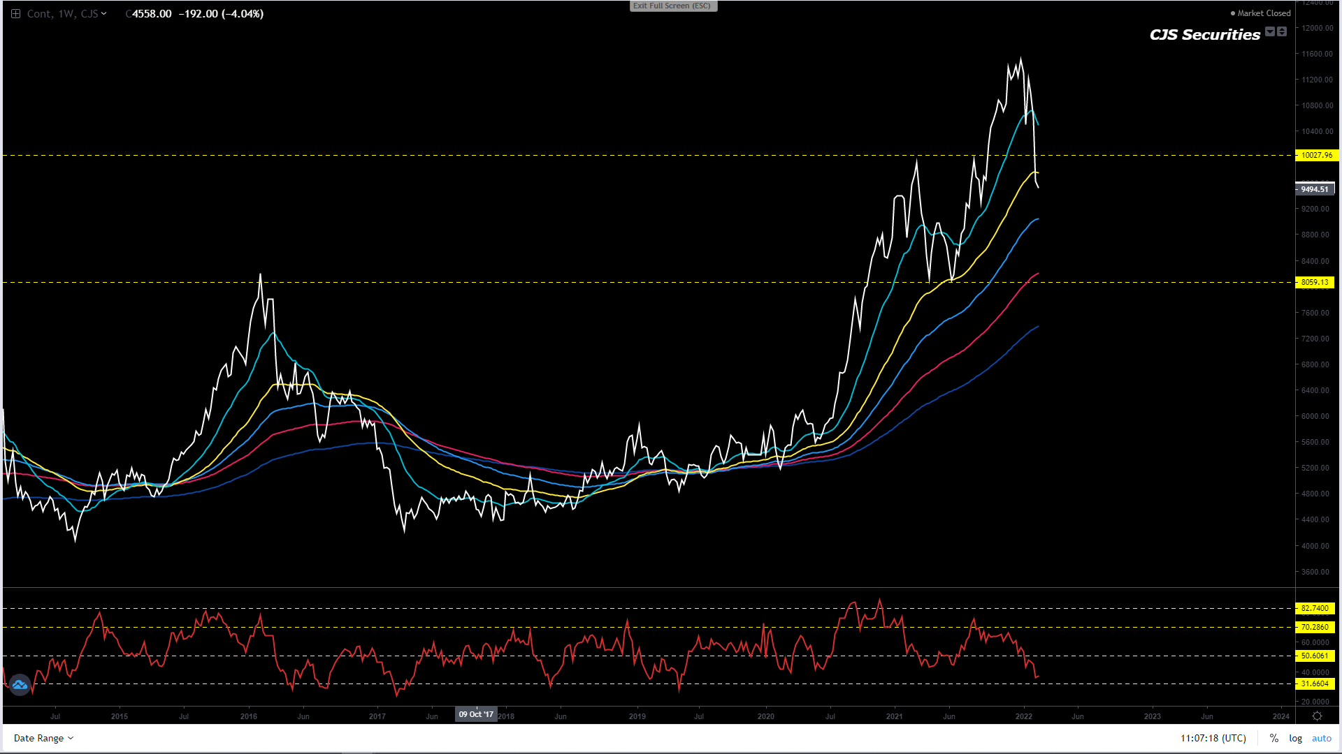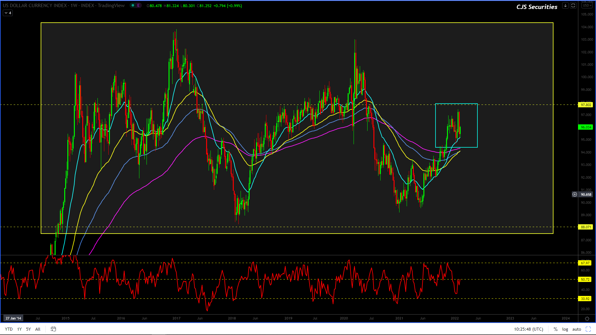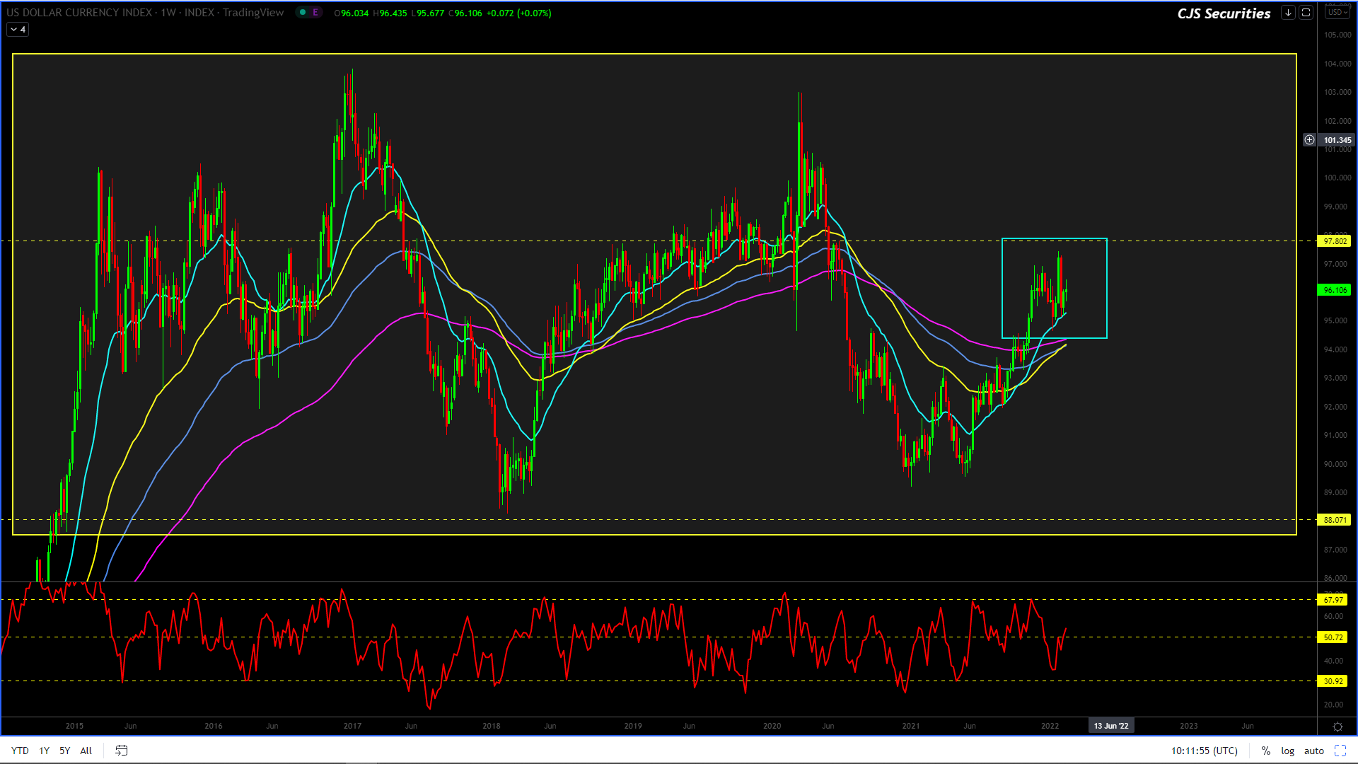 The chart remains range-bound but we feel the move higher toward the top of the range at 11.40% is on the cards before looking to start a severe leg lower to sub 9.00%.
