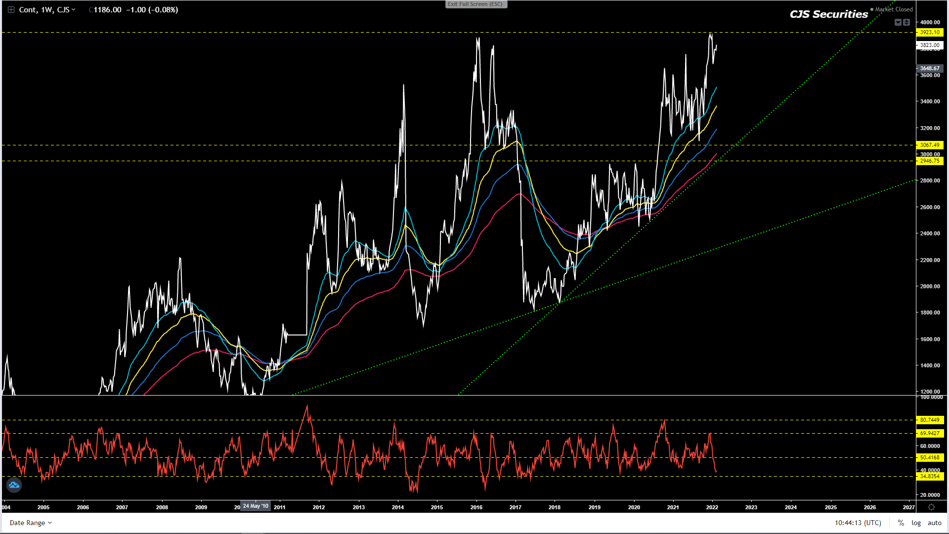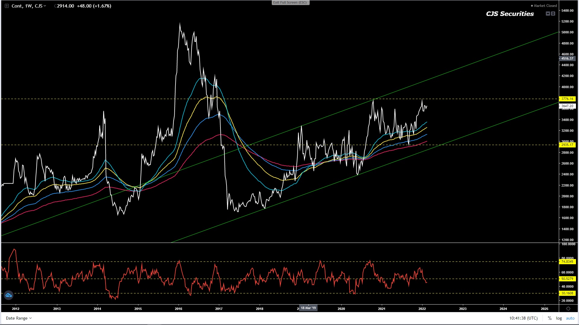 Right now IMO any rally back over R3700 would constitute a selling opportunity.