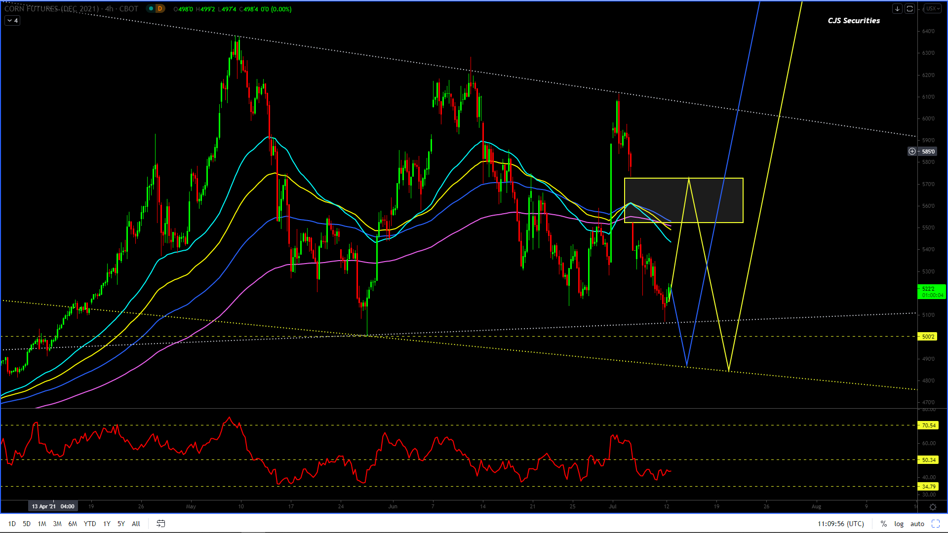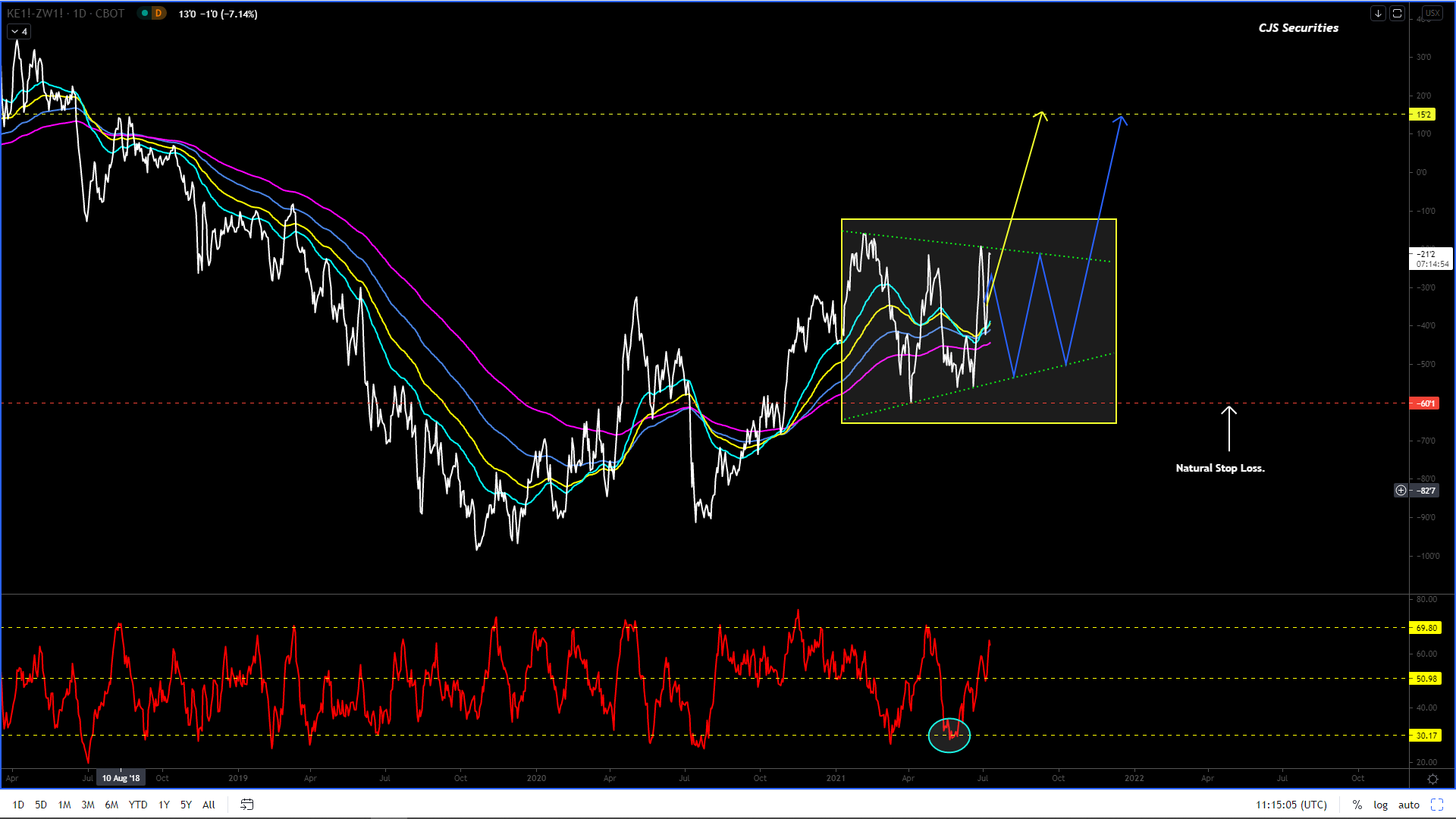 The chart is in a corrective phase and looking to break out to the upside.