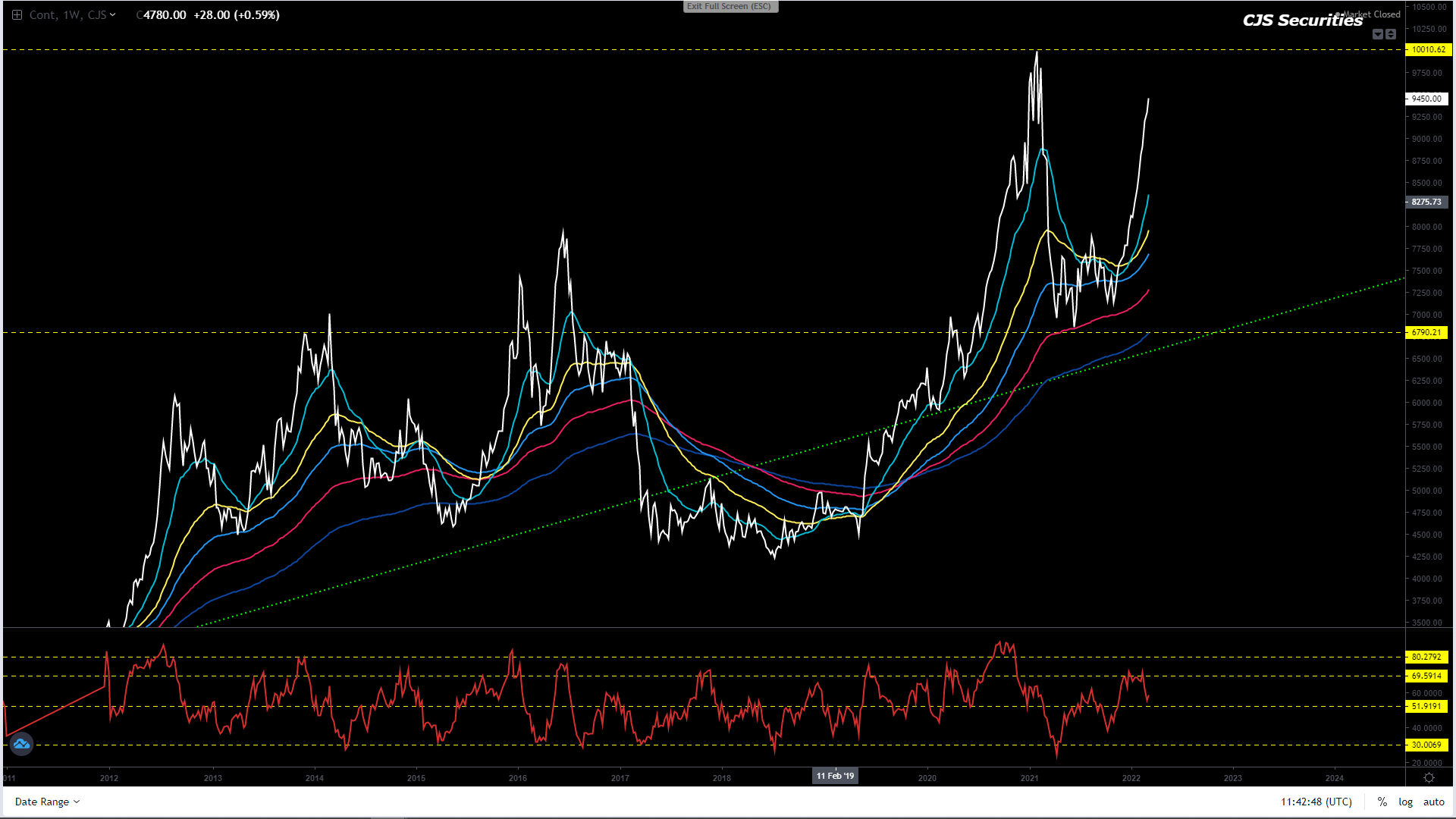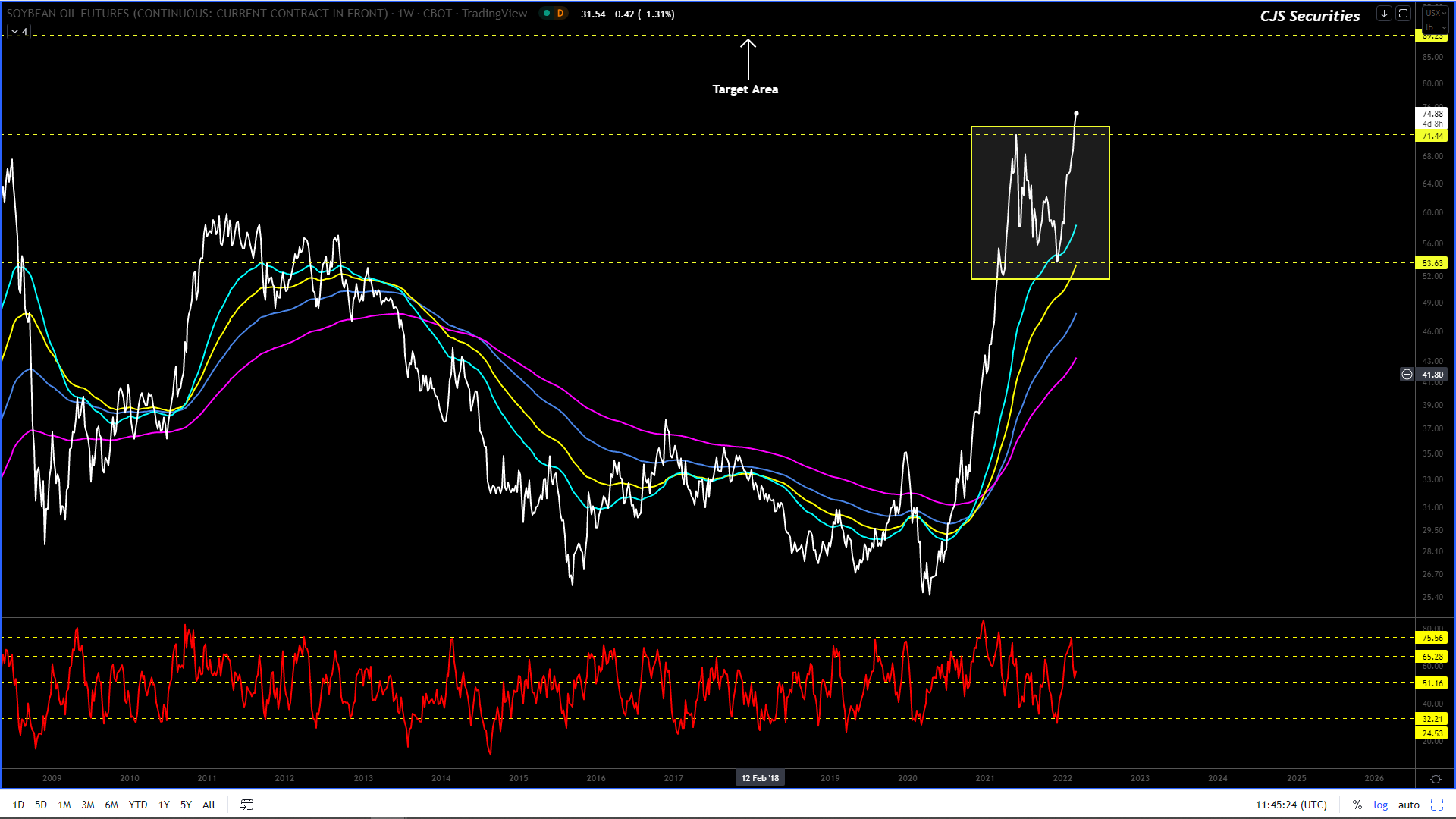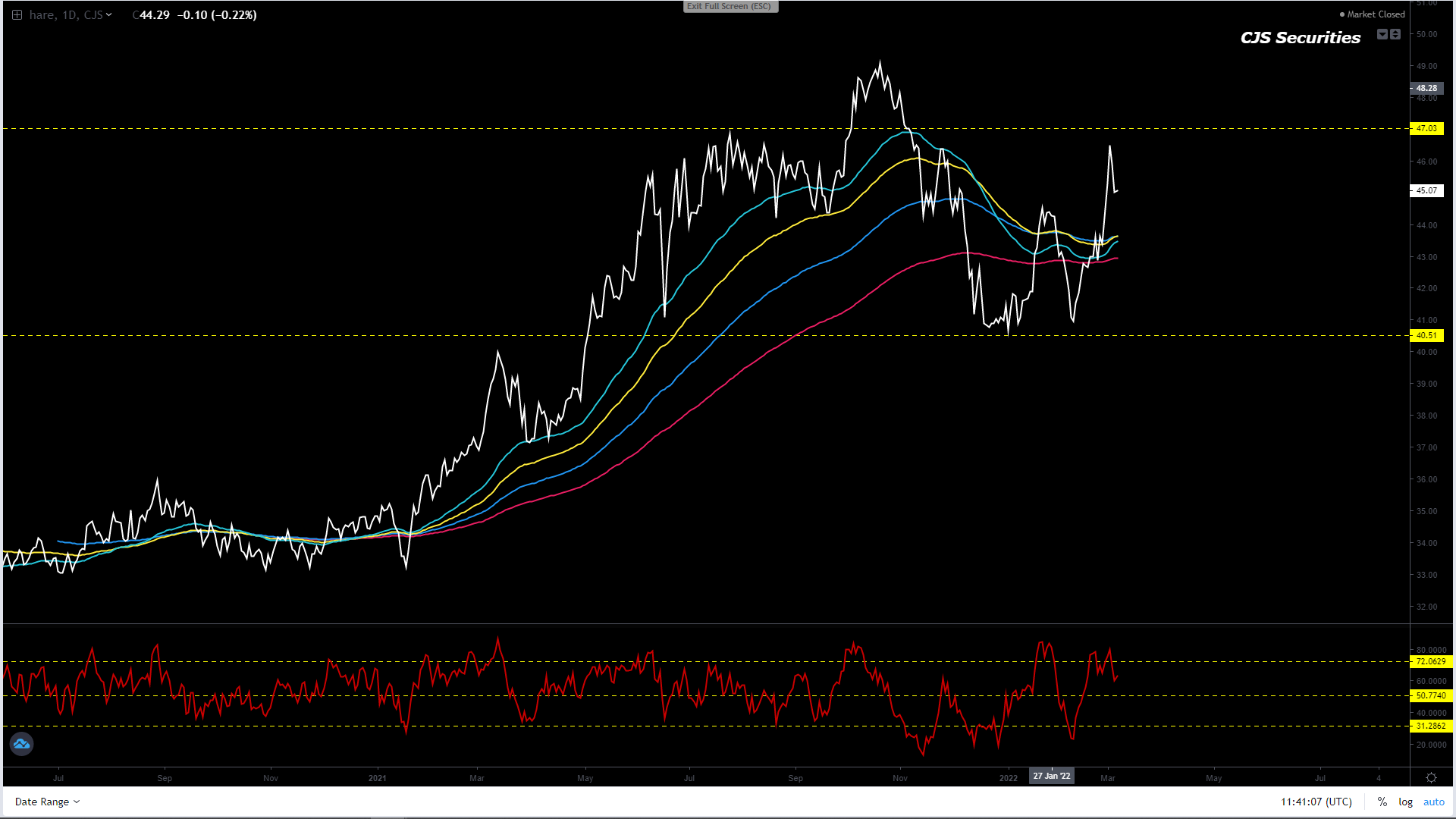 We have not been stopped on the below view but will put in a stop under 40% as this chart is now highly overbought!